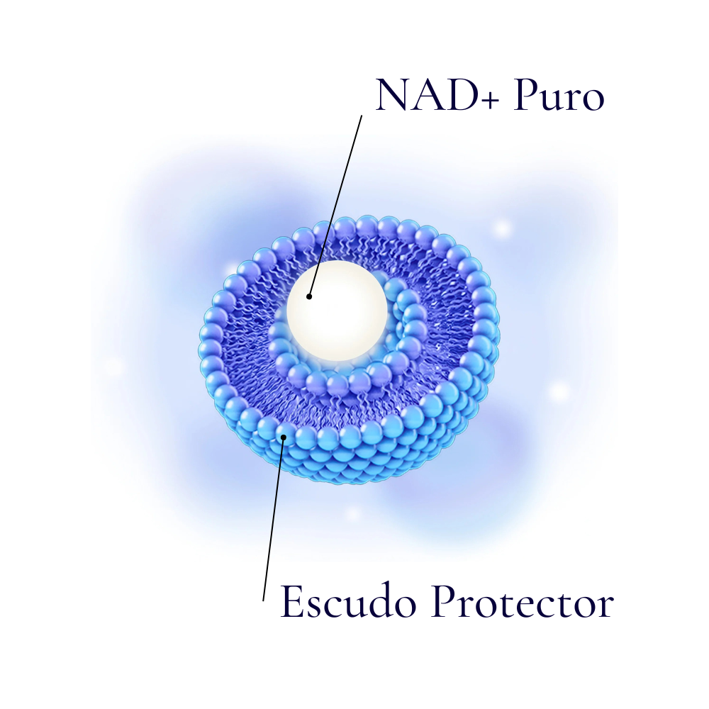 Es la técnica avanzada que usamos para garantizar que el producto funcione. Consiste en encapsular el nutriente activo en diminutas burbujas de grasa (liposomas) que actúan como "transportadores protectores". Esto permite que el NAD+ atraviese el sistema digestivo sin destruirse y facilita una absorción máxima en tu organismo.