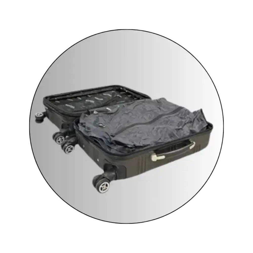 Las Bolsas al Vacío para Viajes miden 45 × 30 × 20 cm, por lo que caben perfectamente en equipaje de mano, mochilas, bolsas de viaje o maletas grandes.